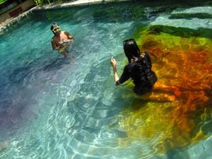 1. the clothes couldn't pass the stage gate (it was 1,5 m in diameter)